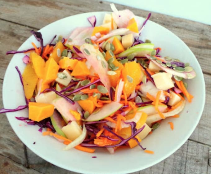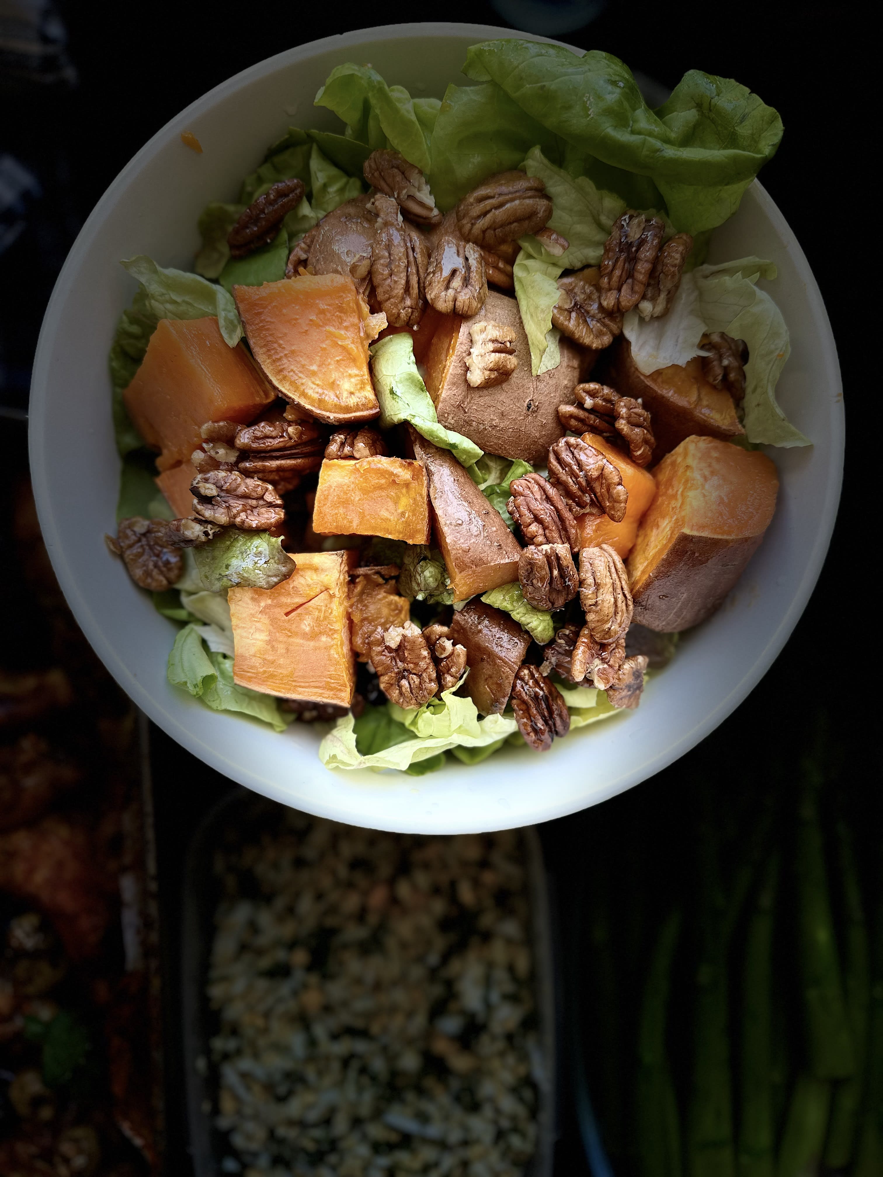 Salade de patates douces rôties aux noix de pécan caramélisées -