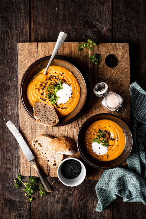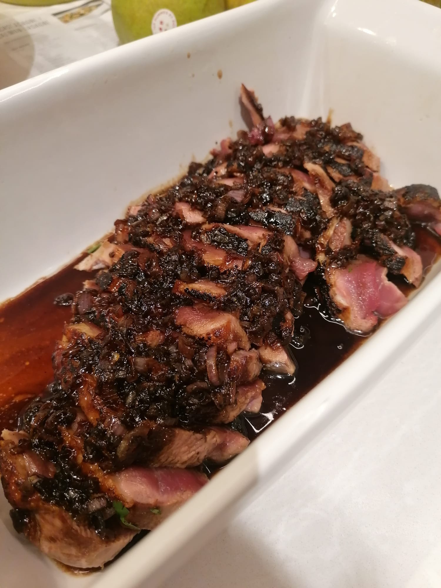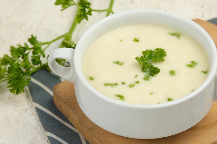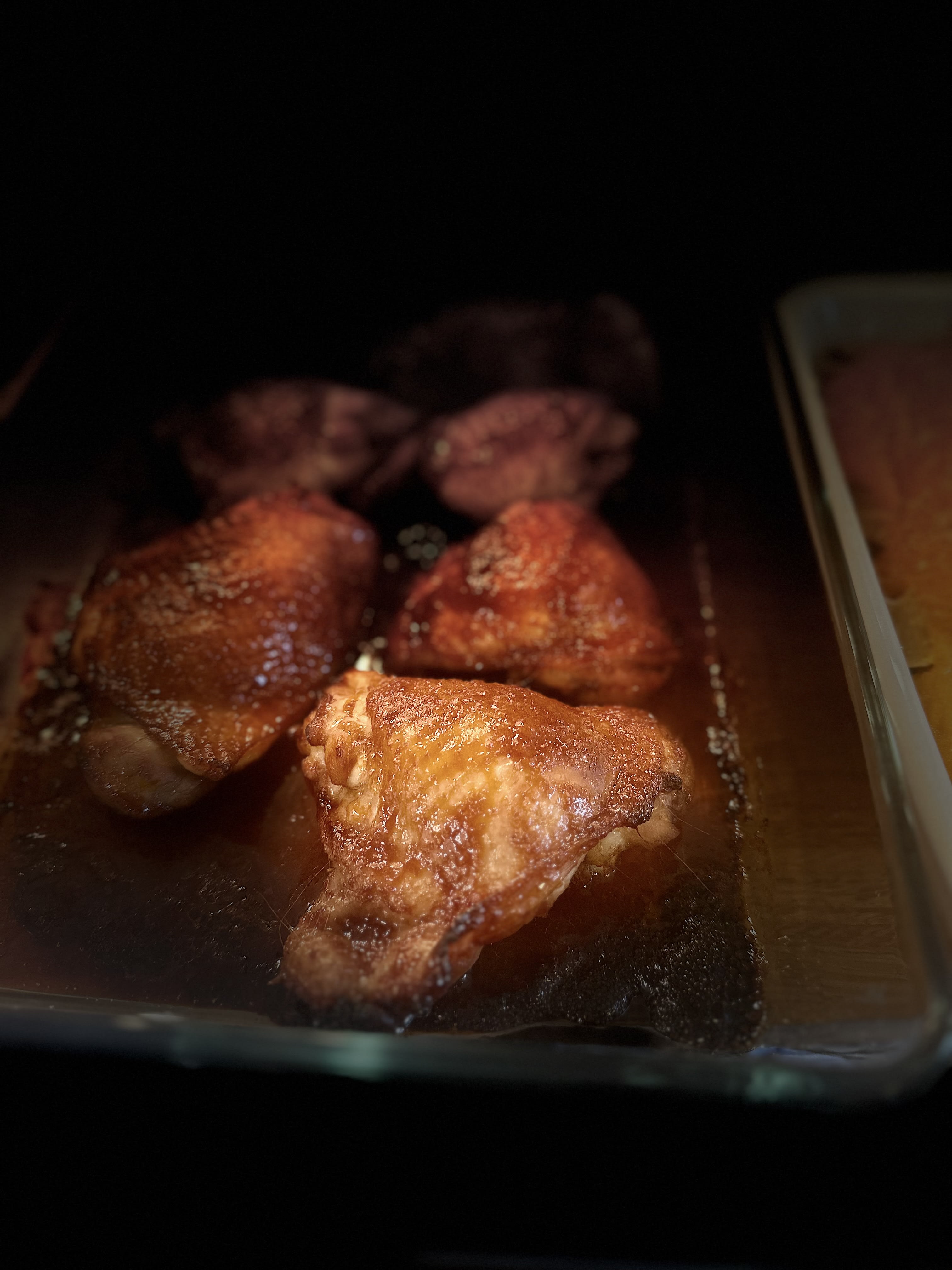Ailes de poulet caramélisées, velouté poireaux-pommes de terre -