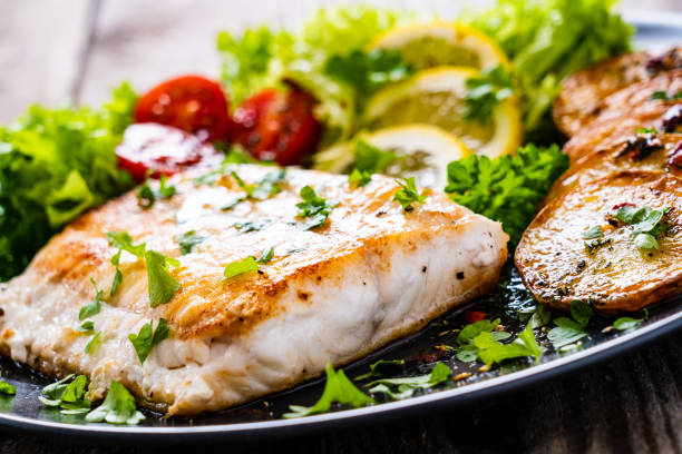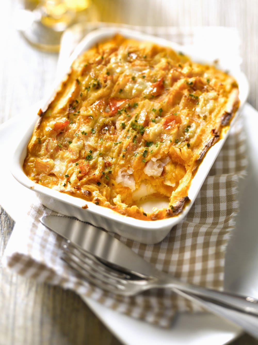 Cabillaud en croûte d'herbes, tomates cerises confites -